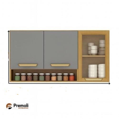 Aéreo com porta de vidro fumê e design moderno. Ideal para organizar utensílios e decorar o ambiente com estilo.