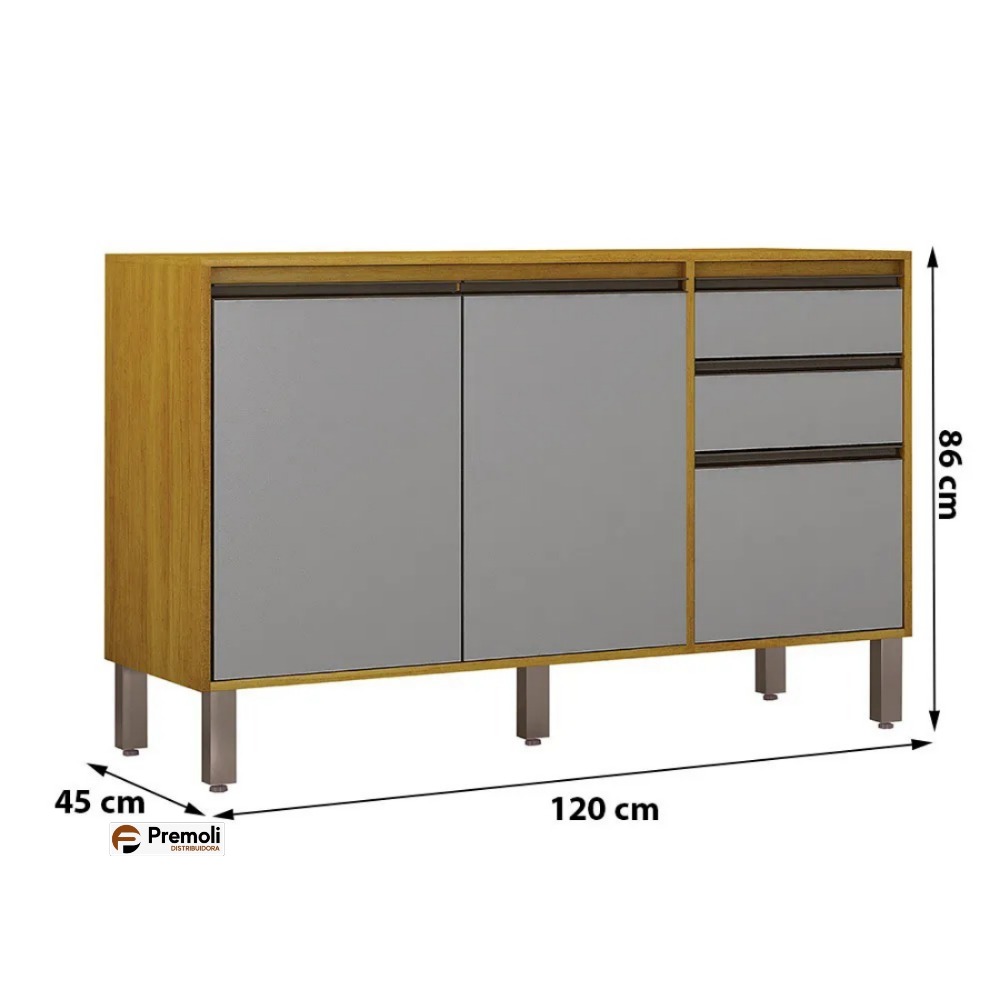 Balcão de Cozinha 3 Portas 2 Gavetas Eduarda chf Cinamomo/Cinza