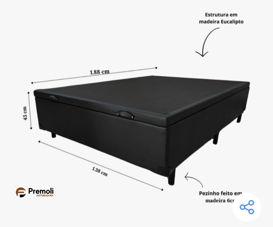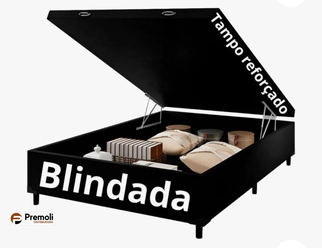 Possui sistema de abertura e fechamento com pistões pneumáticos (amortecedores) que facilitam o manuseio. Sua tampa se mantém aberta sem a necessidade de segurar, deixando um espaço livre entre a estrutura da cama para guardar e organizar objetos.