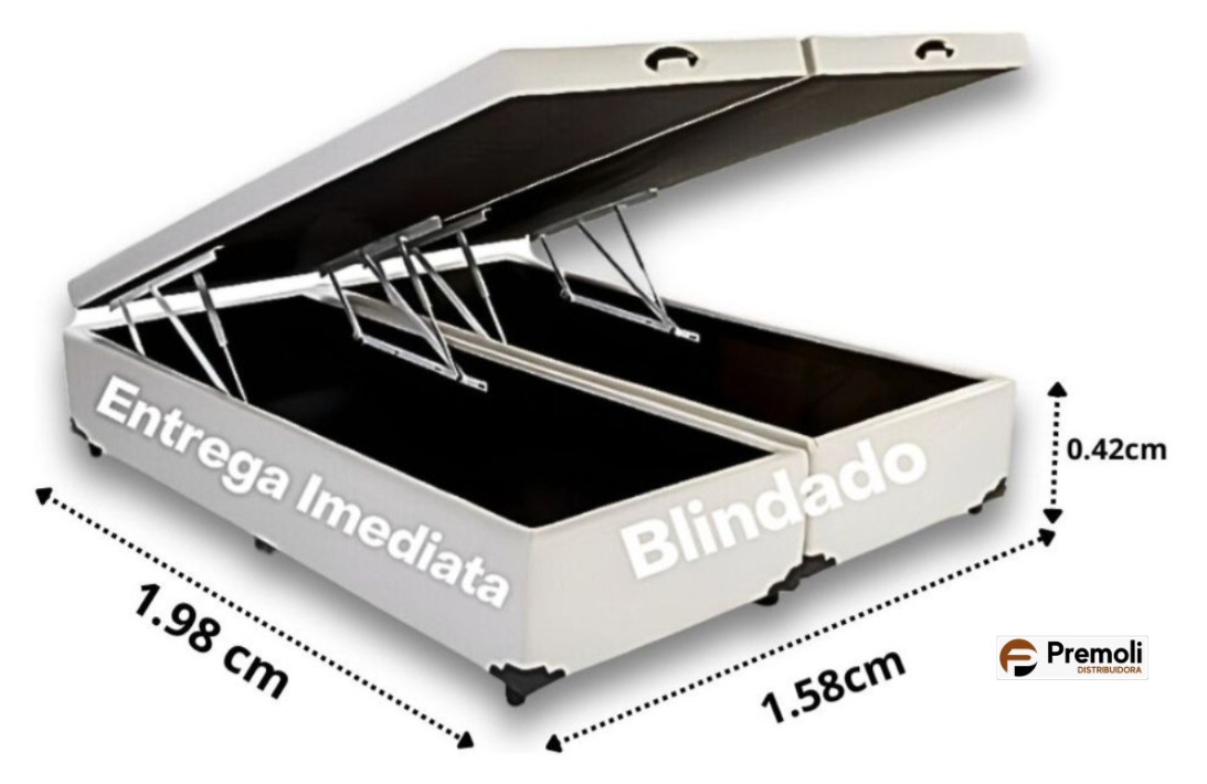 Possui sistema de abertura e fechamento com pistões pneumáticos (amortecedores) que facilitam o manuseio. Sua tampa se mantém aberta sem a necessidade de segurar, deixando um espaço livre entre a estrutura da cama para guardar e organizar objetos.