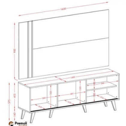 | Dimensões do Produto | Altura: 90 cm Largura: 160 cm Profundidade: 3 cm (Painel), Altura: 57,5 cm Largura: 160 cm Profundidade: 36,5 cm (Bancada) |