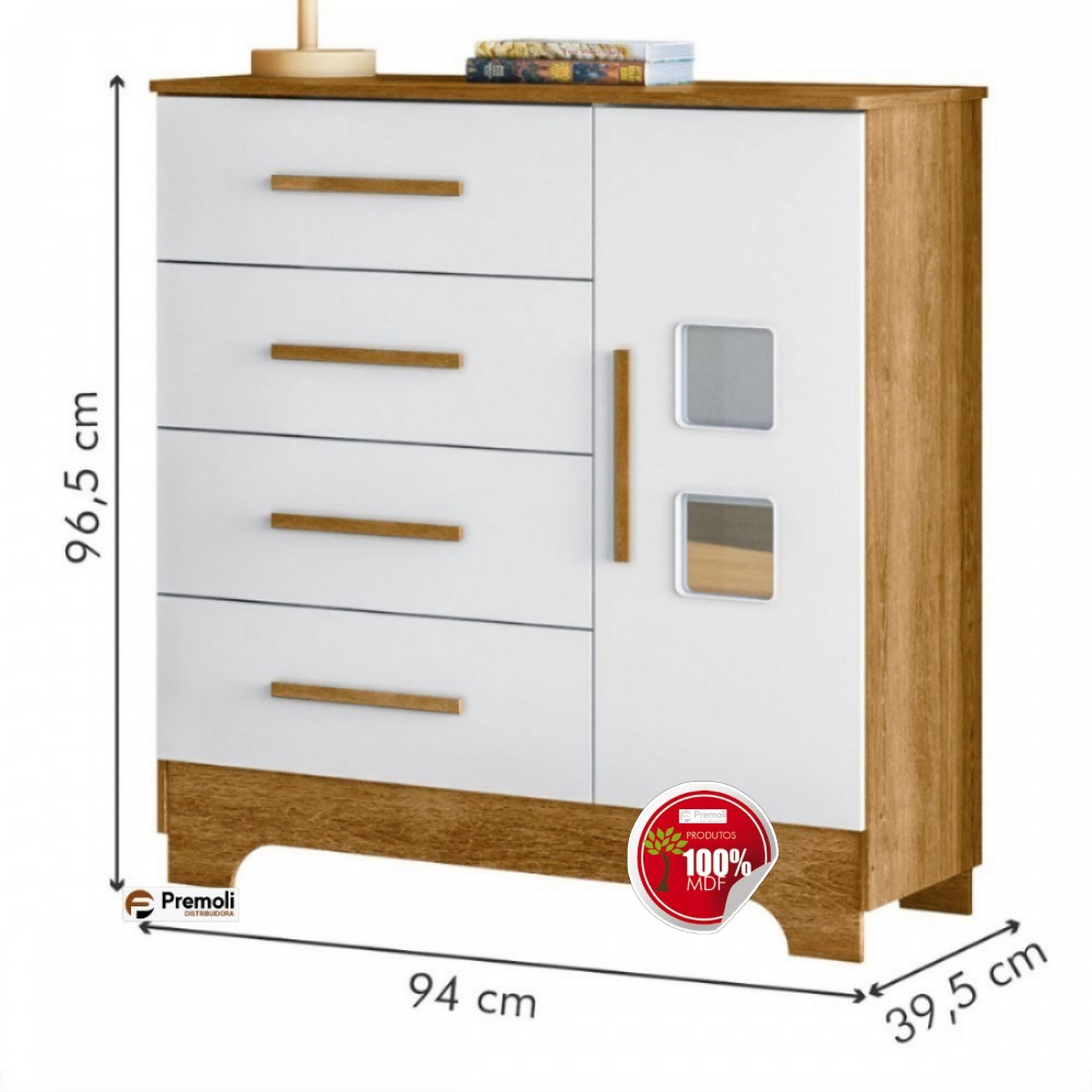 Cômoda Fly 1 Porta e 4 Gavetas Tigus Baby Branco Madeirado Ypê