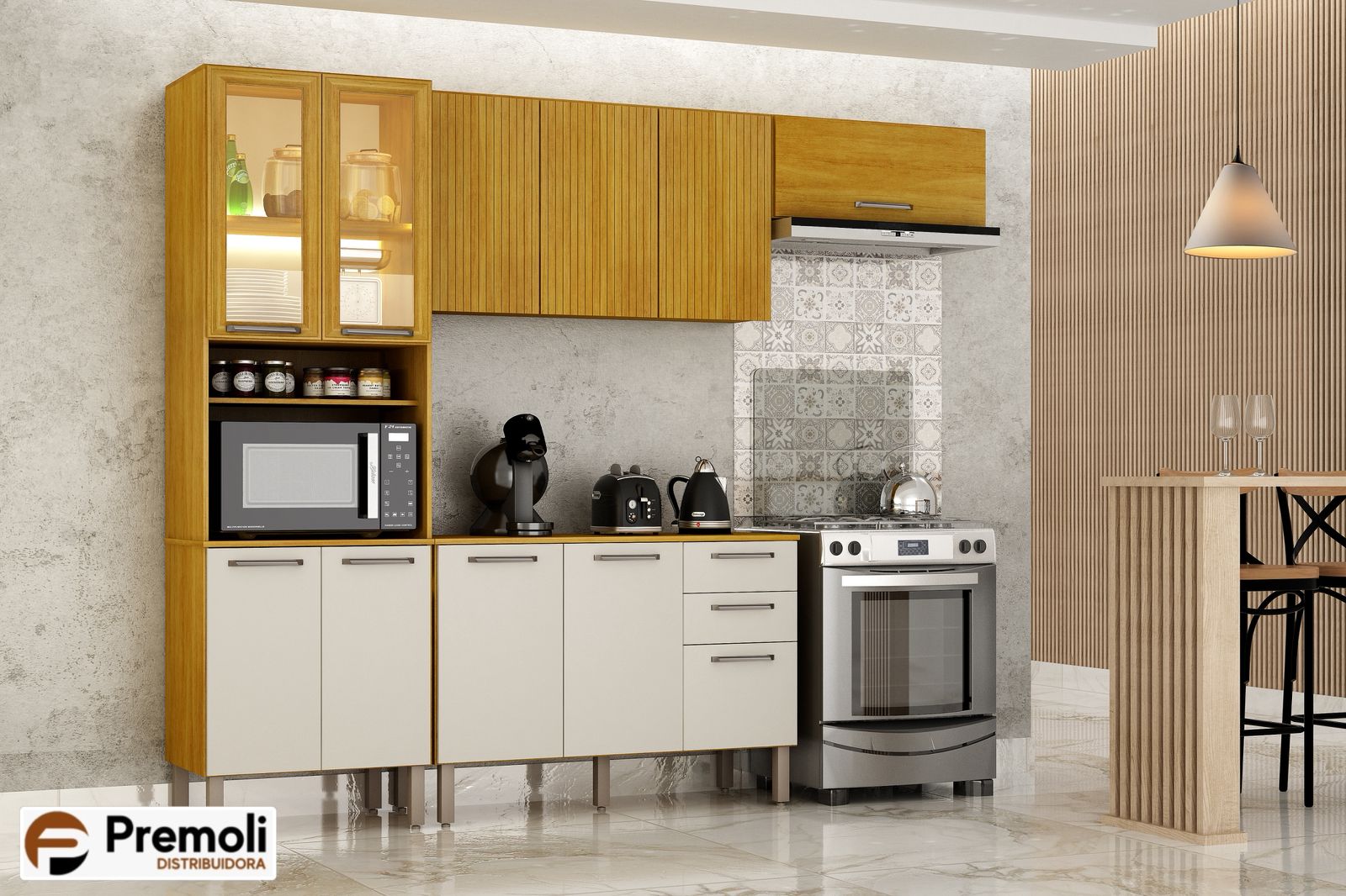 Com pés reguláveisdobradiças metálicas e nicho para geladeira equipado com pistão a gás, a Cozinha Malta se destaca pelo excelente aproveitamento interno e pela sofisticada combinação de tons, que conferem modernidade, leveza e elegância a qualquer ambiente.