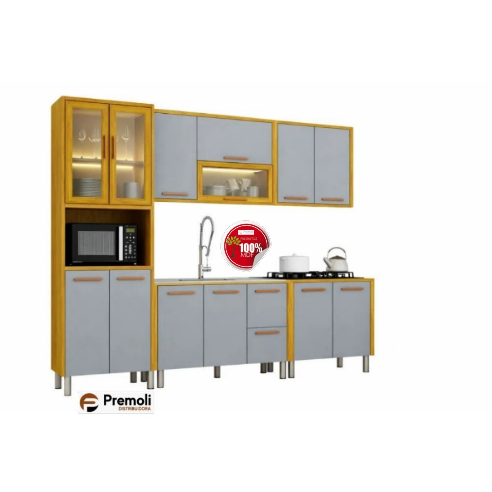 Cozinha Modular Donna 5 Peças – Cinamomo/Cinza – CHF Móveis