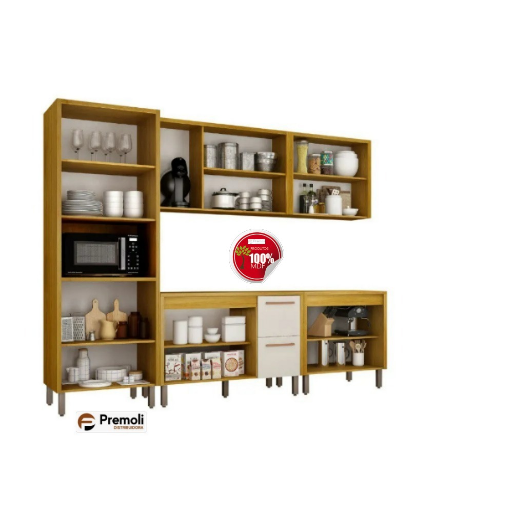 Design moderno e sofisticado, produzida em 100% MDF 15 mm, com acabamento emoldurado que valoriza o ambiente. Possui portas com slow motion, gavetões com divisor de talheres, puxadores de alumínio e portas de vidro Reflecta. Modular, funcional e perfeita para quem busca elegância e durabilidade no dia a dia.
