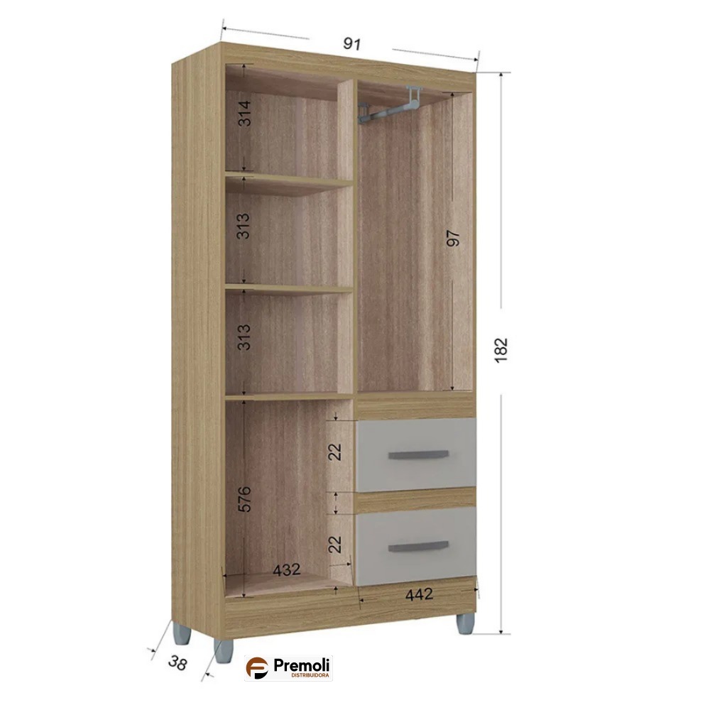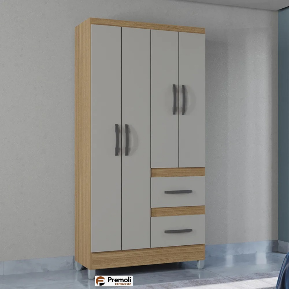 Guarda Roupa Solteiro 4 Portas 2 Gavetas Com Pés Capri Poquema
