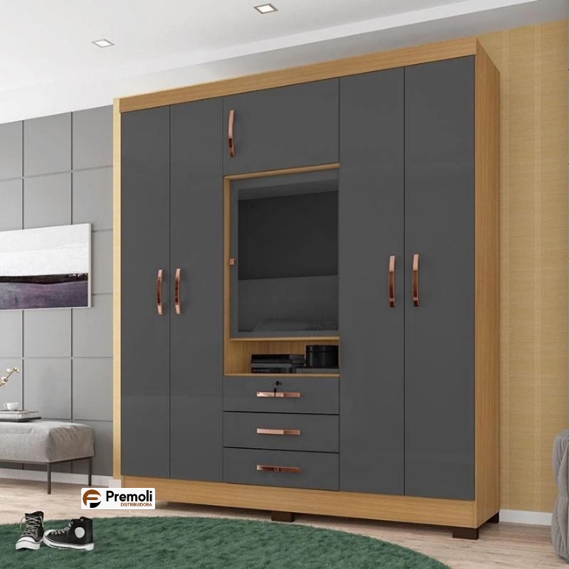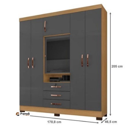 Guarda Roupa Casal Imperial Carvalho grafite – Incorplac