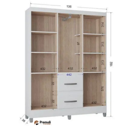 | Dimensões do Produto | Altura: 182 cm, Largura: 135 cm, Profundidade: 38 cm |