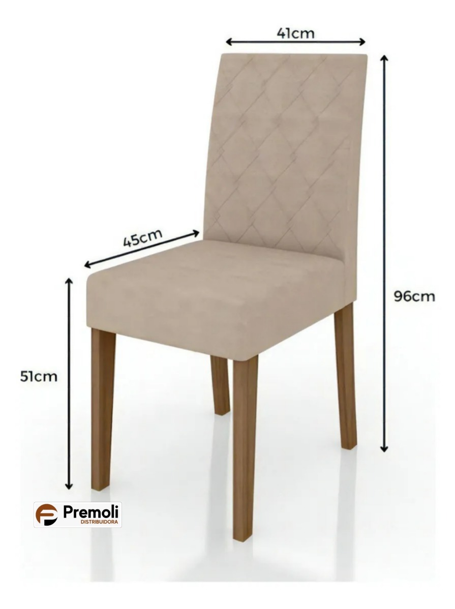 - Cadeira com largura de 41 cm, altura de 96 cm e profundidade de 45 cm.