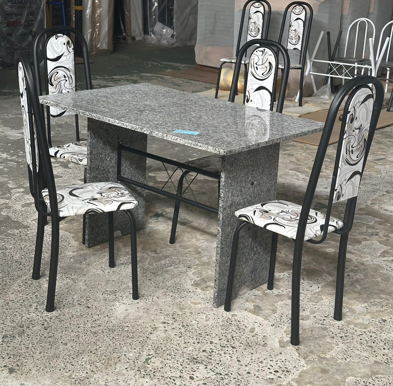Conjunto de Mesa Tubular 8 Cadeiras 140x75cm Mart Prata com Tampo em Granito Ocre Letícia 071 – Tudo de Móveis
