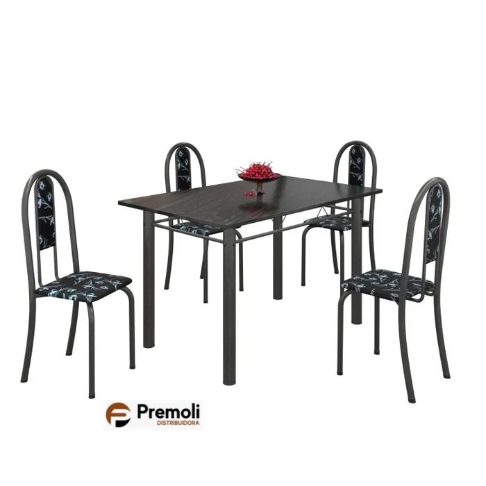 Mesa Tubular 120x75cm Pedra C/4 Cadeiras Preto Floral/Martelado Prata/Ardósia Indiano Pode haver variações de cor Estampas