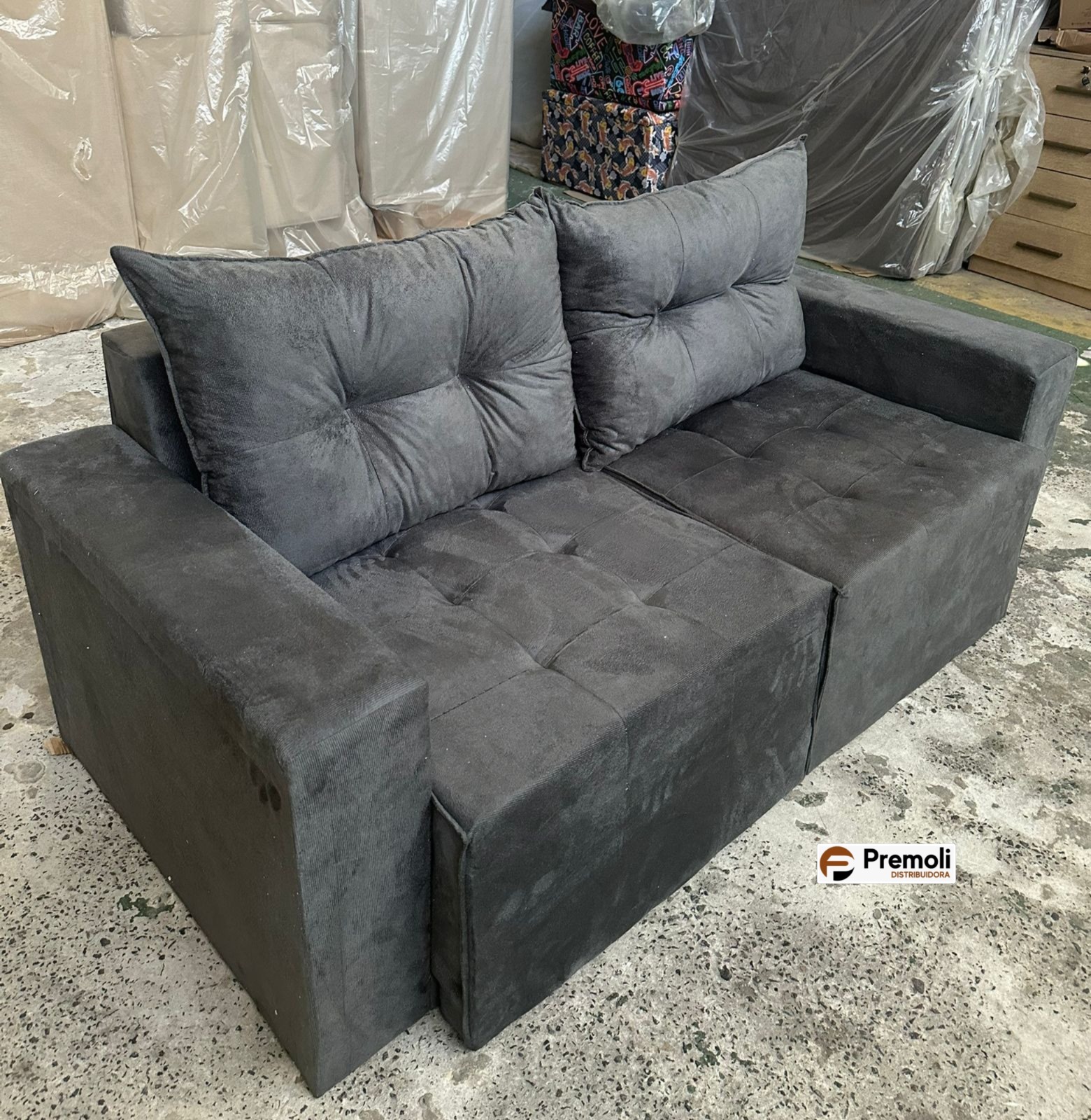 Retrátil 2.00 Guatemala Bi-Partido Encosto Almofadas Solta Cor Cinza Escura Premoli