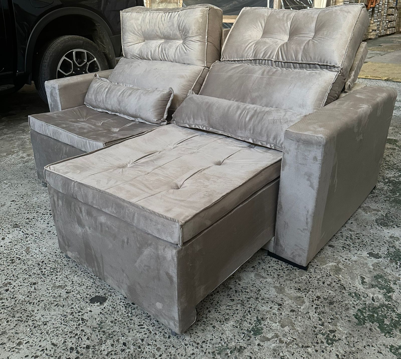 Retrátil e reclinável, uma excelente escolha para quem gosta de reunir os amigos em casa ou assistir filmes com a família, pois esse móvel é espaçoso, confortável. Por ser revestido em velosuede garantimos um toque suave.