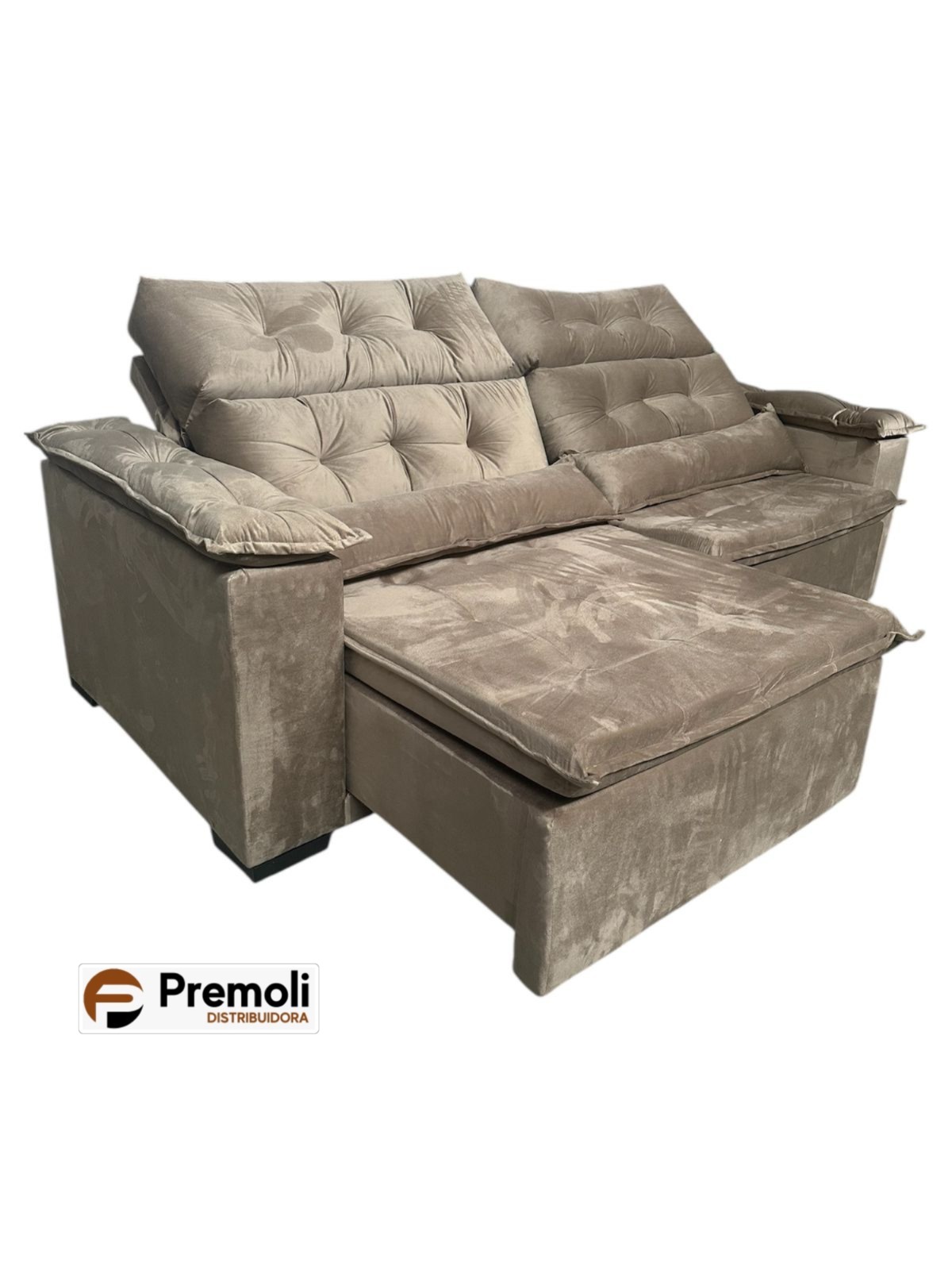 Sofa Premoli 2.30 Retrátil E Reclinàvel C/ Pillow Top Braco Fibra Cor Bege