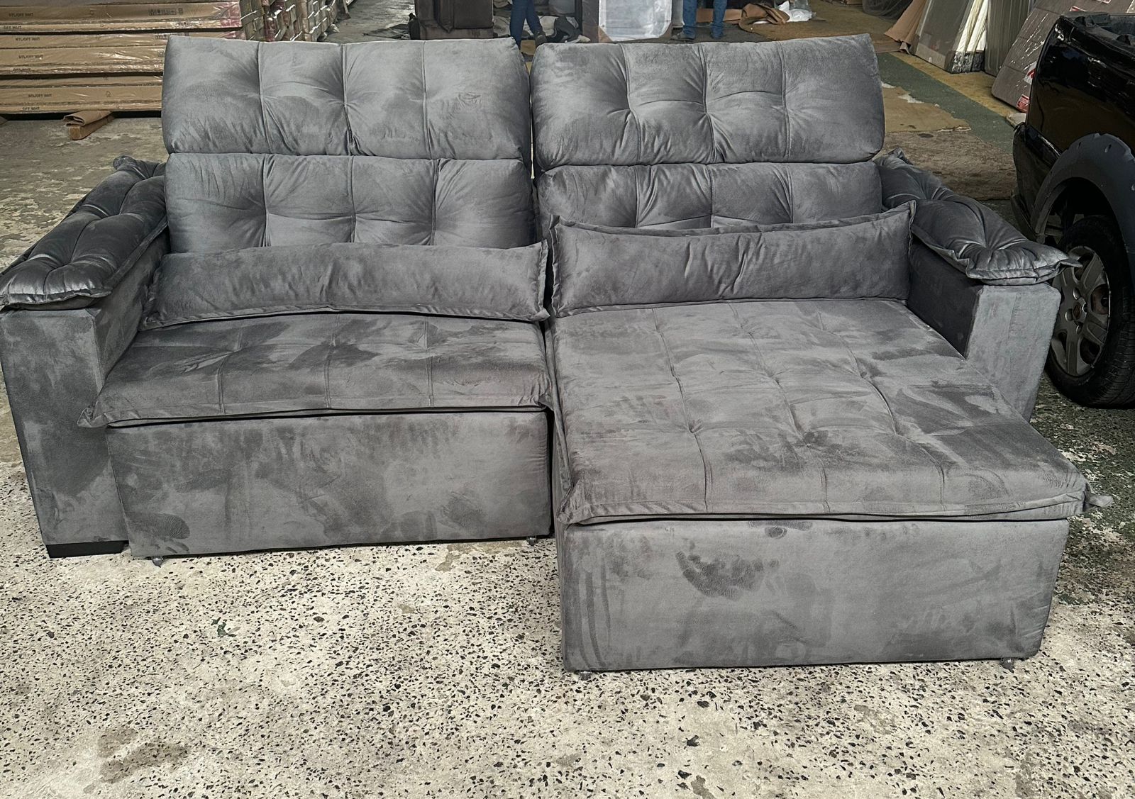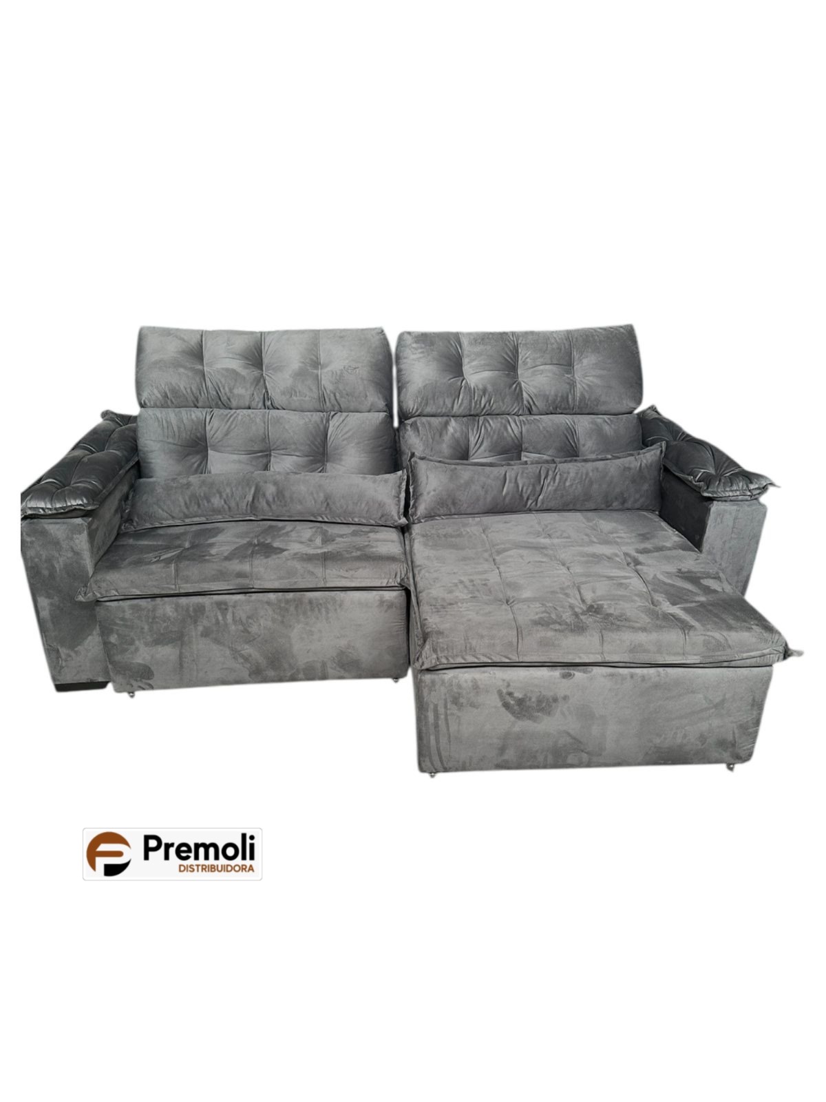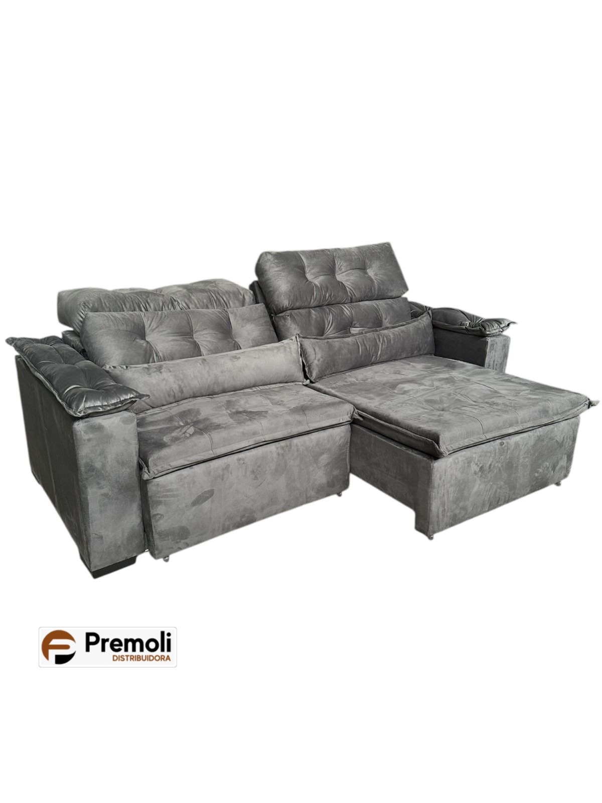 Sofa Premoli 2.30 Retrátil E Reclinàvel C/ Pillow Top Braco Fibra Cor Cinza